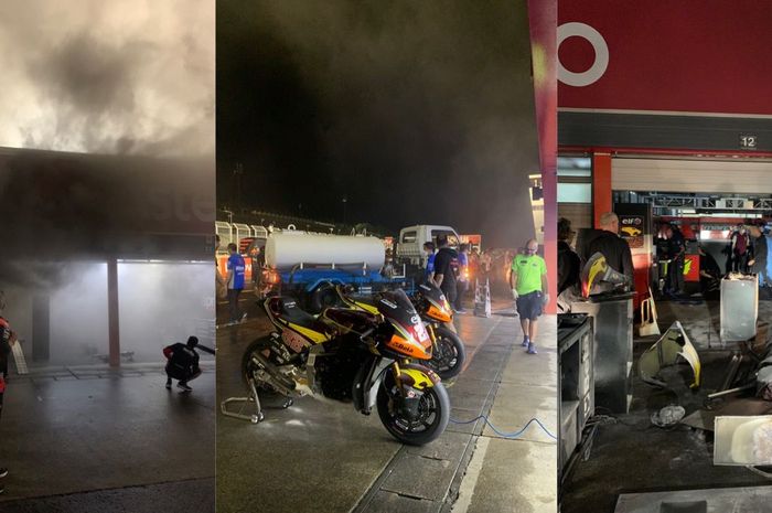 "Beginilah tampilan pit lane di Motegi sekarang: api di paddock Marc VDS, yang berada di antara paddock Aprilia dan Suzuki," tulis akun @BorjaGonjalesG.