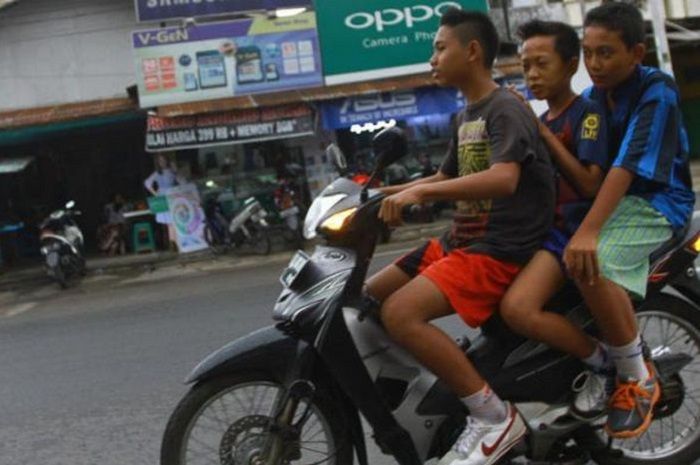 Bonceng motor bertiga dilarang karena dianggap membahayakan keselamatan berkendara.