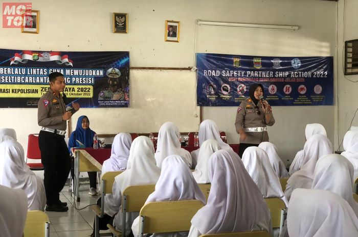 MOTOR Plus-Online.com - Tidak hanya di jalanan, Operasi Zebra 2022 juga digelar di sekolah SMA, tujuannya untuk sosialisasi pelajar yang membawa motor.