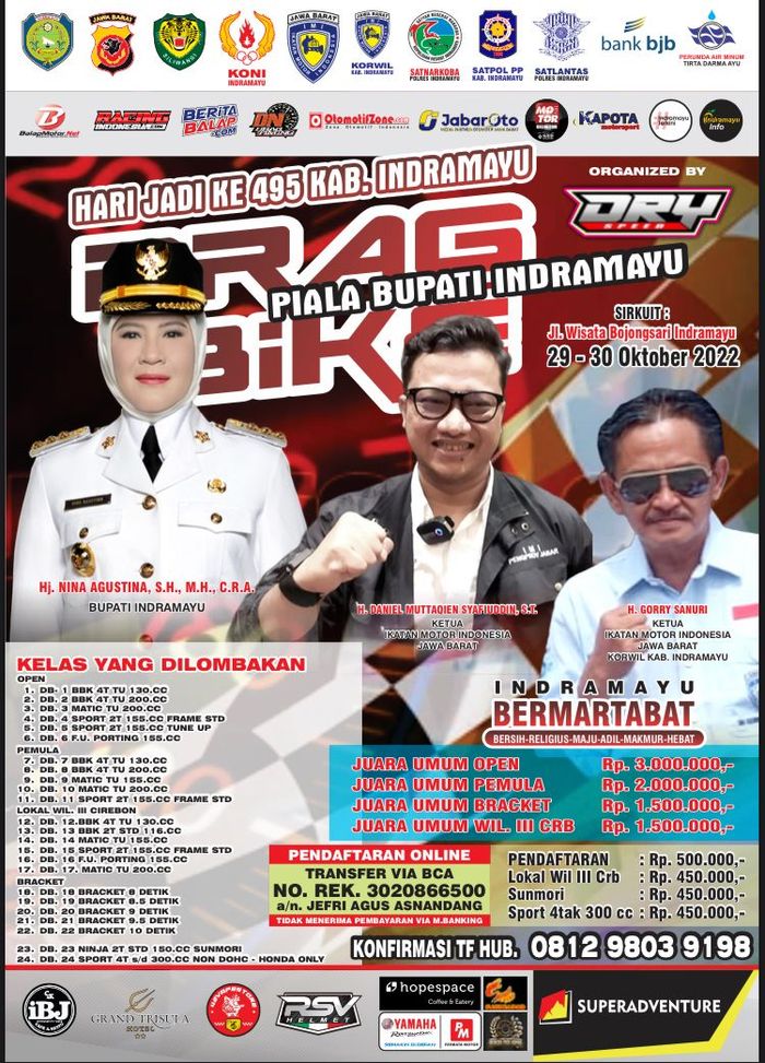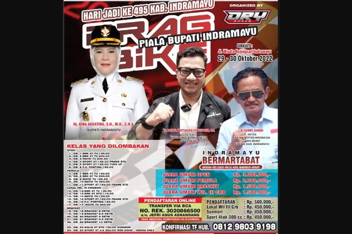 Motor PLUS-Online.com - Dalam rangka merayakan ulang tahun ke-495 Kabupaten Indramayu menyelenggarakan Drag Bike Piala Bupati Indramayu.