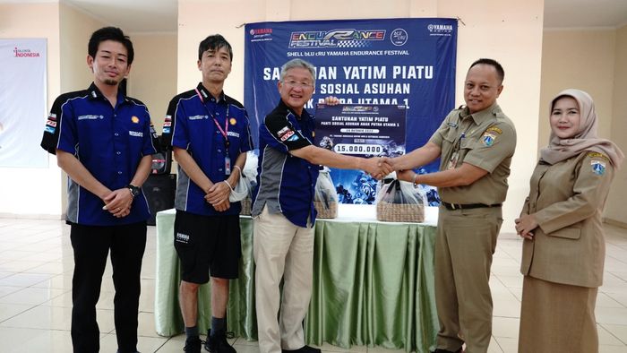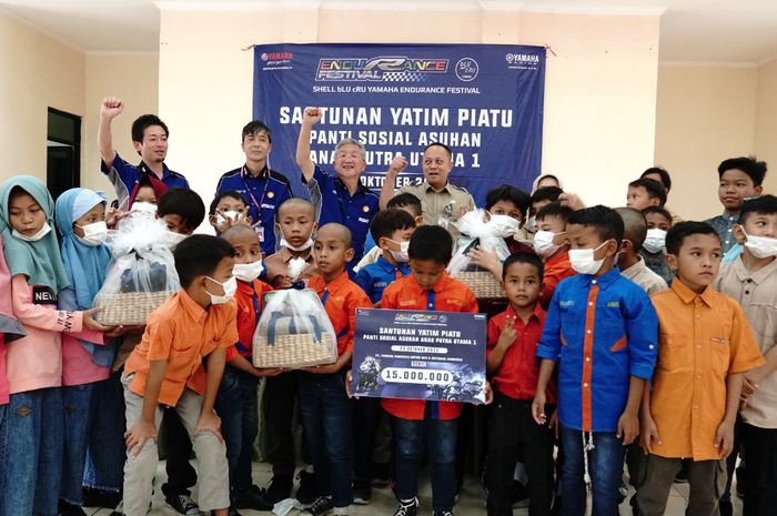 MOTOR Plus-Online.com - Presiden Direktur dan CEO PT. Yamaha Indonesia Motor Manufacturing (YIMM), Minoru Morimoto menyerahkan donasi bantuan kepada Panti Sosial Asuhan Anak Putra Utama 1.