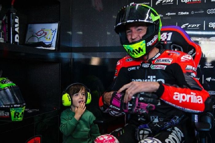 MOTOR Plus-online.com - Aleix Espargaro bersiap hadapi MotoGP Valencia 2022 dengan helm baru bergambar lucu.