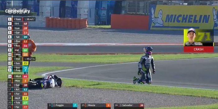 Pembalap Sterilgarda Husqvarna Max, Ayumu Sasaki crash di 3 menit terakhir.