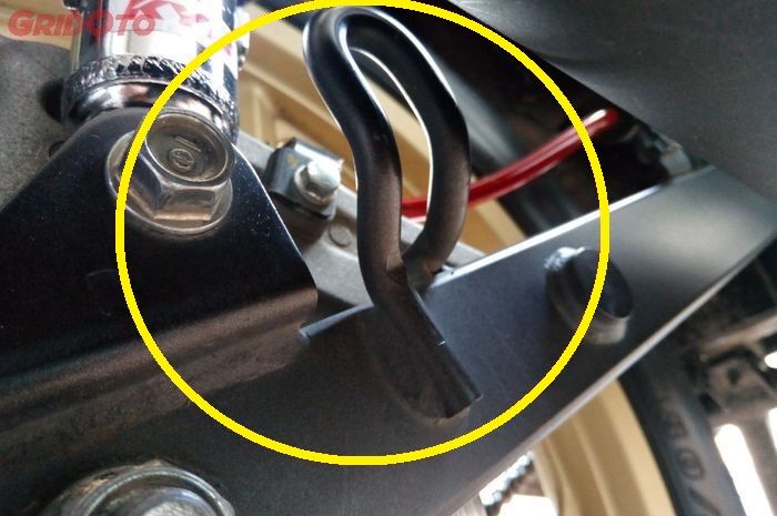 Terlihat di beberapa swing arm motor bebek dilengkapi besi melingkar yang bentuknya mirip gantungan.