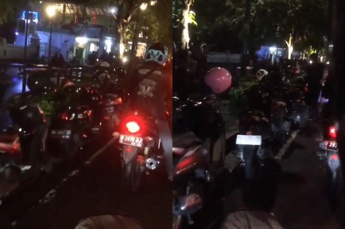 Dalam video, terlihat suasana malam hari dengan motor yang kondisi terparkir di sisi jalan.