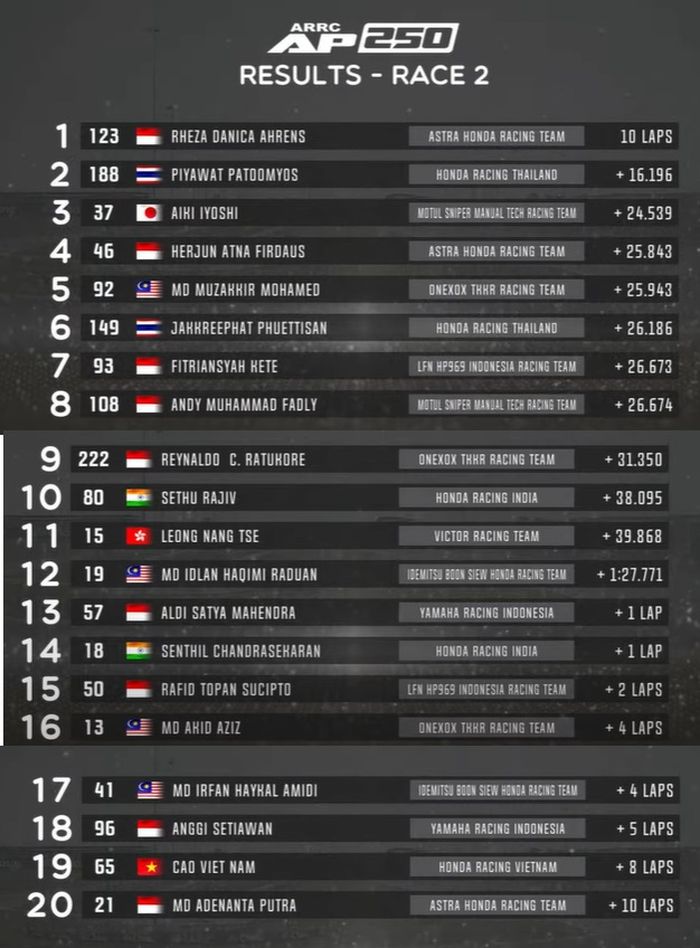 HASIL RACE 2 AP250 ARRC THAILAND 2022