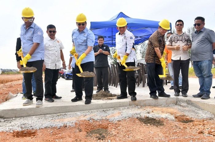 MOTOR Plus-online.com - Ketua Ikatan Motor Indonesia (IMI) Bambang Soesatyo melakukan ground breaking pembangunan sirkuit road race dan drag bike di Batam.