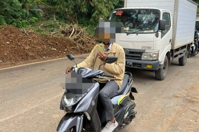 Dahsyatnya kerusakan akibat bencana longsor pasca-gempa Cianjur di sekitar Warung Sate Shinta membuat pengendara yang melintas menjadikannya sebagai objek foto.