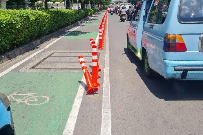 MOTOR Plus-online.com - Driver ojek online atau ojol mengeluhkan stick cone jalur sepeda, mengganggu dan malah menjadi tempat ngetem ilegal.