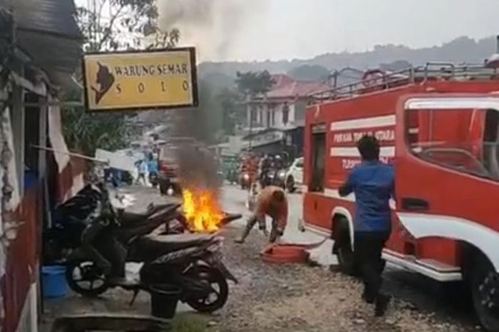 Saat ada motor terbakar, beberapa warga sekitar pun dibuat panik.