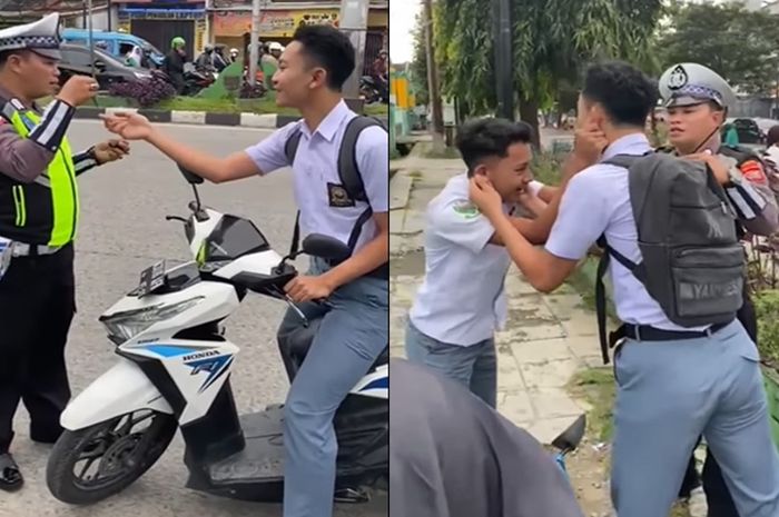 Adapun polisi tersebut memiliki maksud untuk menghentikan mereka lantaran dua pelajar tersebut melakukan pelanggaran lalu lintas.
