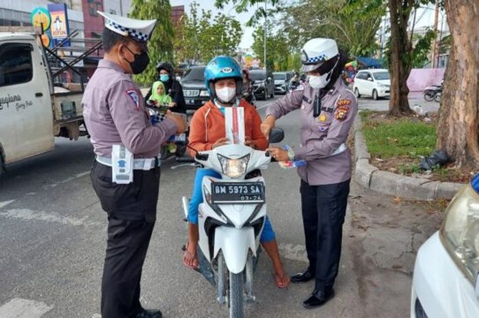 Para pelanggar lalu lintas di Kabupaten Siak Provinsi Riau dibuat gembira oleh Polisi.