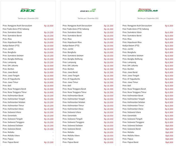 Sedangkan, harga Pertamina Dex berada di rentang Rp 18.800 - Rp 19.600 per liter.