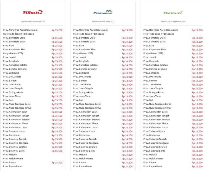 Berbeda dengan harga Pertalite dan Solar, yang dipatok masing-masing Rp 10.000 dan Rp 6.800 per liter di seluruh Indonesia.
