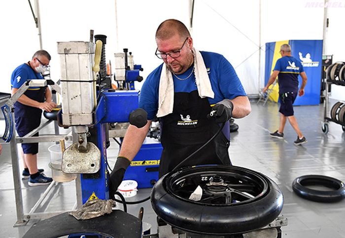 Fakta unik menarik ban MotoGP adalah material untuk mengisi ban bukanlah Nitrogen melainkan udara atau angin pada umumnya.