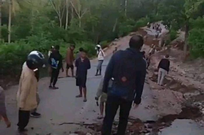 "Jalan yang putus (ambles) itu sepanjang kurang lebih 300 meter di RT 09, RW 02, Desa Napi," ungkap seorang warga Billy Nakamnanu, kepada Kompas.com, Selasa pagi.