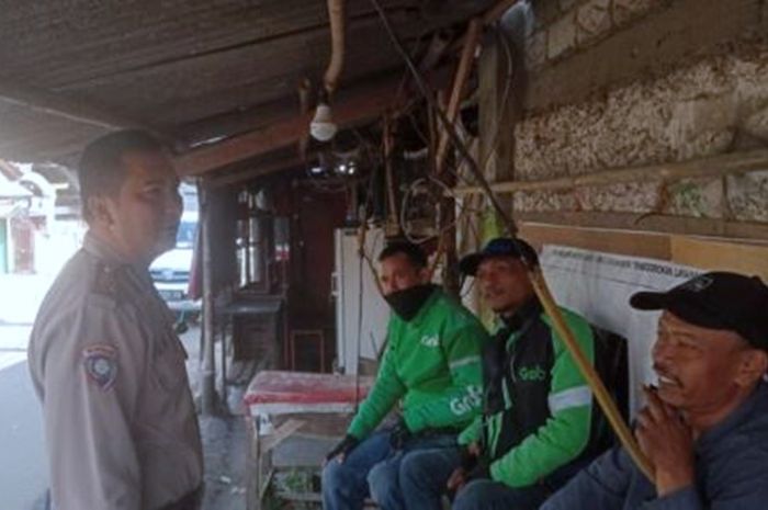 MOTOR-Plus-Online.com - Kedatangan polisi membuat para driver ojol yang sedang beristirahat mendadak kaget.
