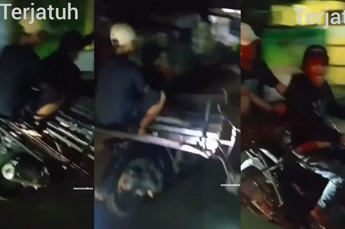 Setelah diteriaki, kedua pelaku pun terjatuh dari motornya.