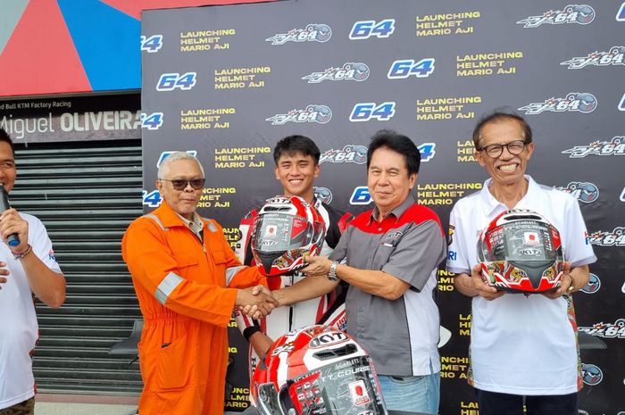 Bukan helm baru biasa, Mario Aji mengenalkan pelindung kepala dengan corak spesial yang akan dipakainya di Moto3 2023.