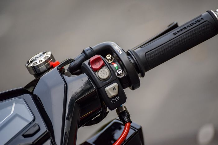 Yang menarik adalah kedua panel saklar di area setang ini diganti dengan model yang mirip kepunyaan Ducati.