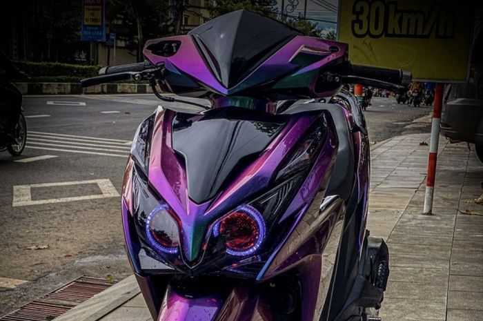 MOTOR Plus-Online.com - Muka bak burung hantu, modifikasi motor Honda Vario 125 lawas ini juga punya bodi dilebur cat bunglon.