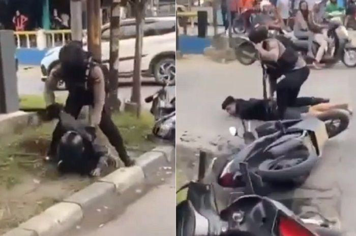 Dalam video, terlihat polisi sedang meringkus sejumlah geng motor yang konvoi sambil bawa sajam di siang bolong.