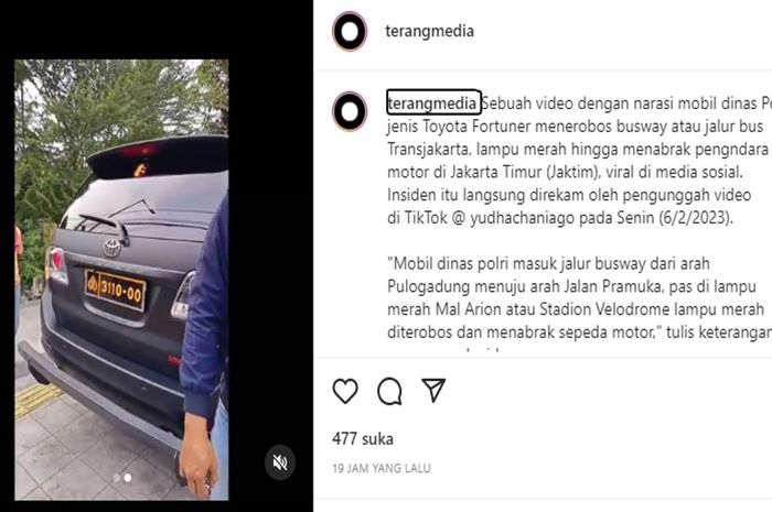 MOTOR Plus-Online.com - Sempat viral di media sosial mobil dinas aparat kepolisian tabrak pemotor dan menerobos jalur busway di Rawamangun.