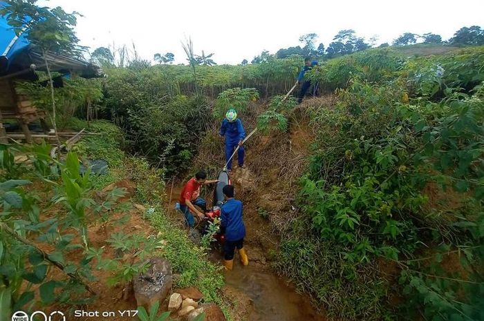 MOTOR Plus-online.com - Pemotor tiba-tiba nyungsep ke kebon singkong di Hambalang, Bogor, Jawa Barat, gara-gara pakai Google Maps.