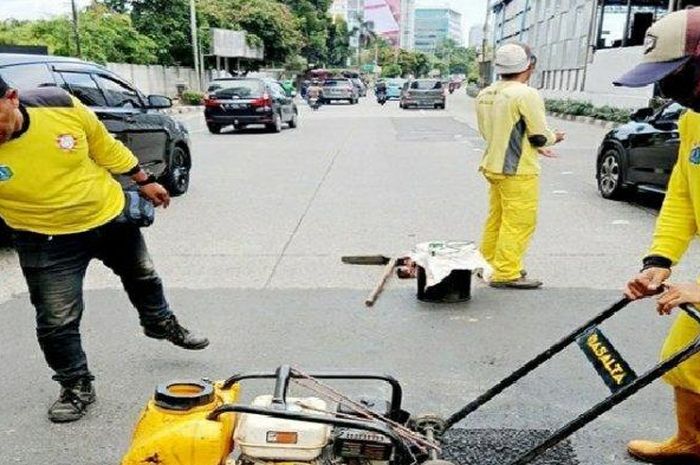 MOTOR Plus-online.com - Pemotor bisa bernafas lega, karena Suku Dinas Bina Marga Jakarta Barat mulai menambal jalan berlubang.