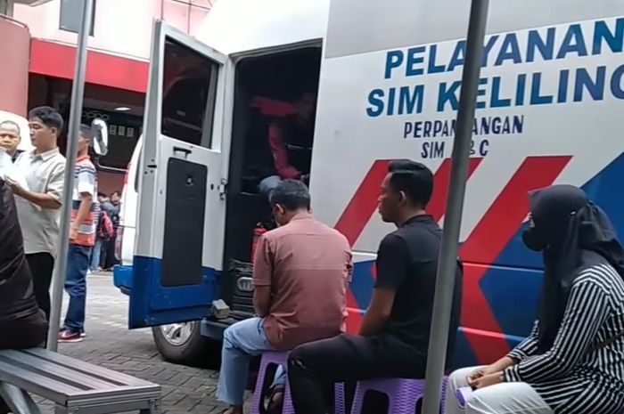 Karena hanya untuk perpanjang SIM, Mardiyanto memilih di mobil SIM Keliling saja.