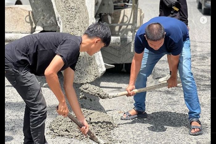Bambang memborong semen satu truk molen untuk menutup lubang-lubang di Jalan Parit Indah.