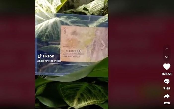 Postingan tersebut dibuat (17/3/2023) lalu yang memperlihatkan video uang pecahan Rp5000 yang memiliki nomor seri unik, yaitu KLG000000.