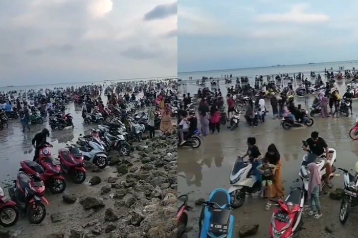 MOTOR Plus-online.com - Ramai di media sosial video ratusan motor matic terparkir di sebuah pantai.