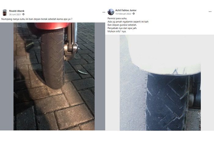 "Permisi para suhu. Ada yg prnah ngalamin seperti ini kah Ban depan gundul sebelah. Penyebab nya dari apa yah. Mohon info" nya," tulis Achil Fabloo Junior.