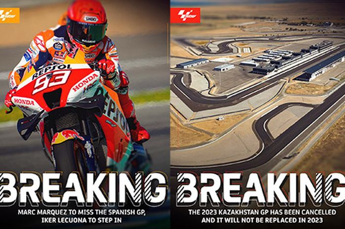MOTOR Plus-online.com - Marc Marquez absen di MotoGP Spanyol 2023 ternyata bukan satu-satunya kabar buruk di musim ini, MotoGP Kazakhstan terpaksa batal karena alasan kuat.