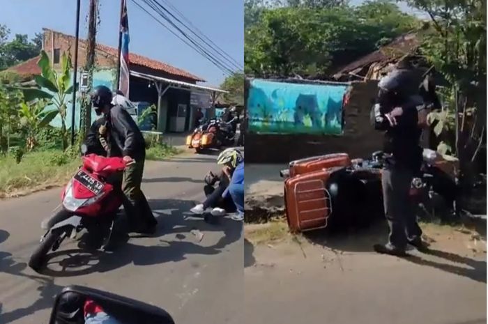 MOTOR Plus-Online.com - Kecelakaan antara moge Harley-Davidson versus Honda BeAT yang dibawa emak-emak di Majalengka.