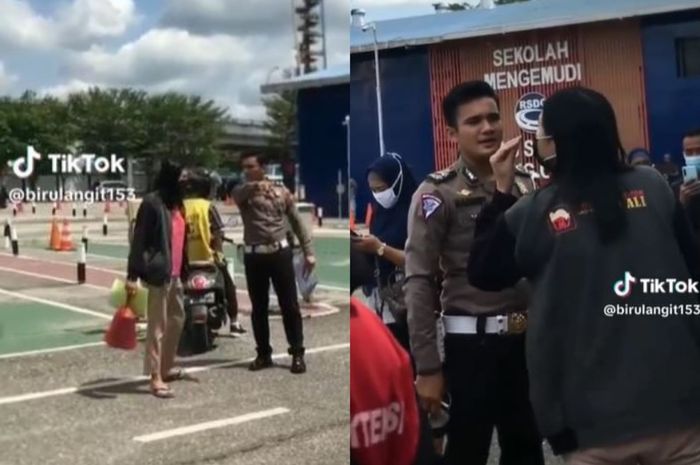 Terlihat dalam detik-detik awal video tersebut, seorang emak-emak mengomeli Polisi saat berada di area ujian praktik SIM C.