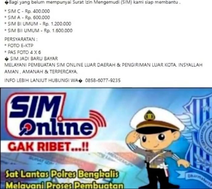 "Hoaks itu, biaya penerbitan SIM telah diatur dalam Peraturan Pemerintah No. 76 Tahun 2020 tentang Jenis dan Tarif atas Jenis Penerimaan Negara Buka Pajak yang Berlaku pada Kepolisian Negara Republik Indonesia," ucapnya.