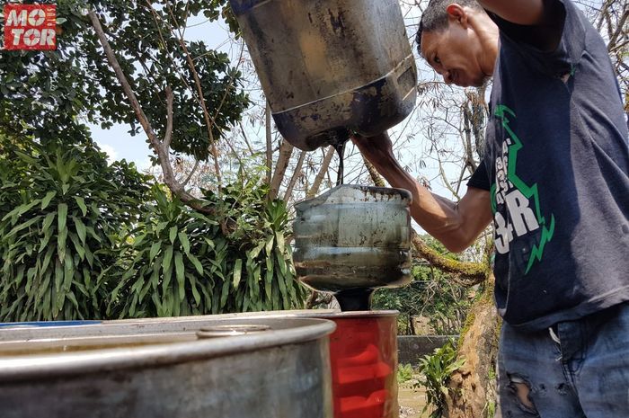 "Oli bekas biasanya digunakan untuk bahan campuran aspal, buat proyek-proyek jalanan," ujar Wagiman, pengepul oli bekas di Jl. Daan Mogot dikutip dari GridOto.com.
