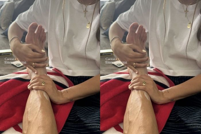 MOTOR Plus-online.com - Beredar luas foto kaki pembalap Repsol Honda, Marc Marquez diurut sang pacar Gemma Pinto beberapa hari menjelang MotoGP Belanda 2023.