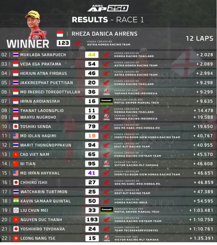 HASIL RACE 1 AP250 ARRC JEPANG 2023