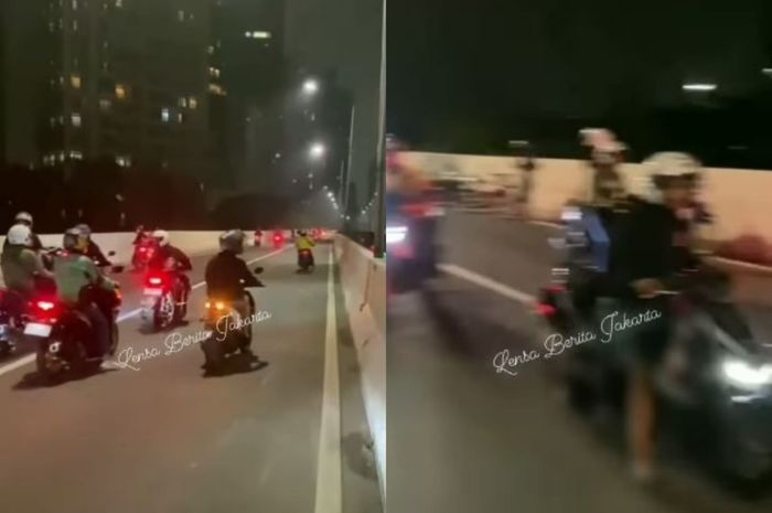 Beberapa motor yang dikendarai oleh anak muda nekat melewati Jalan Layang Non Tol (JLNT) Casablanca.