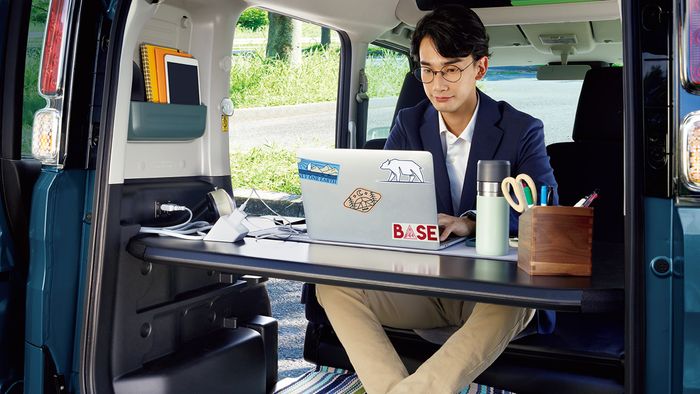 Meski kabinnya simpel, bagian dalam Spacia Base dapat difungsikan untuk berbagai aktivitas pemiliknya secara fleksibel.