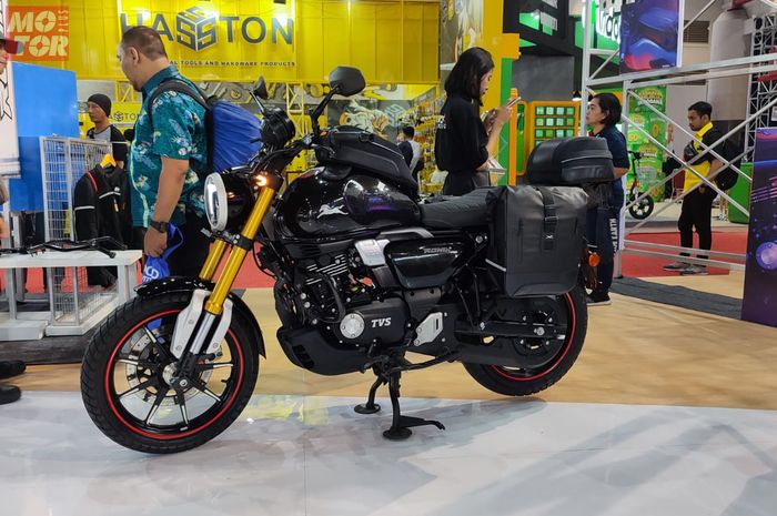 Ada yang menarik saat peluncuran TVS Ronin di Jakarta Fair 2023, terlihat pula sebuah modifikasi motor TVS Ronin yang memakai aksesoris resmi.