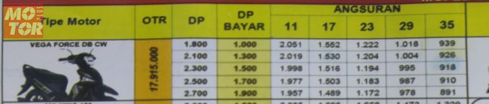 Lebih jelasnya, simak skema kredit Yamaha Vega Force di bawah ini: