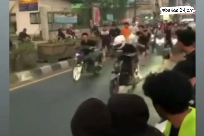 MOTOR Plus - online.com Aksi balap liar di Bekasi memang sangat berani karena dilakukan di depan Polsek sampai menutup jalan.