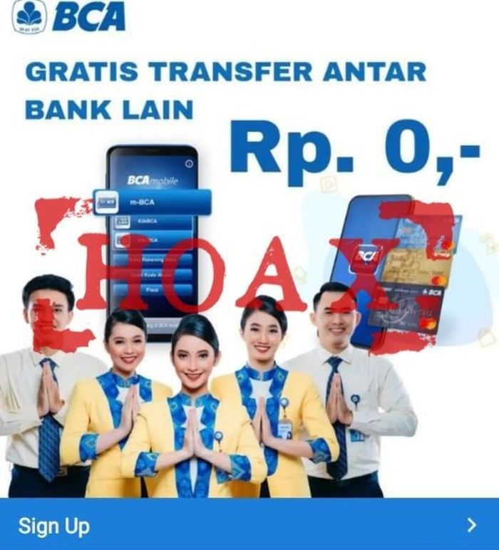 Jika melihat ada opsi Sign Up setelah mengklik unggahan penipuan tersebut, maka jelas itu adalah penipuan.