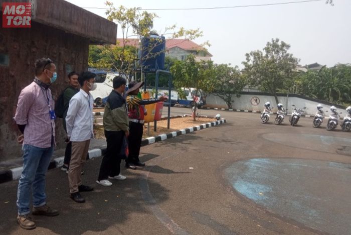 Di lokasi ada lima orang yang akan mengikuti praktik ujian SIM C.