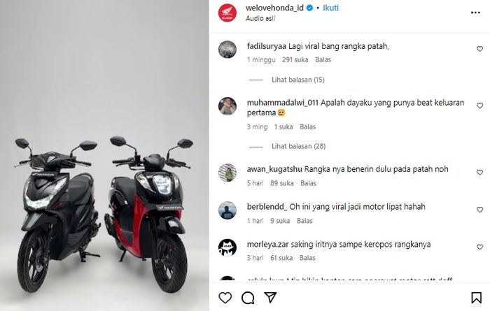 Berikut ini beberapa komentar dipostingan Instagram @welovehonda_id pada 11 Agustus 2023.