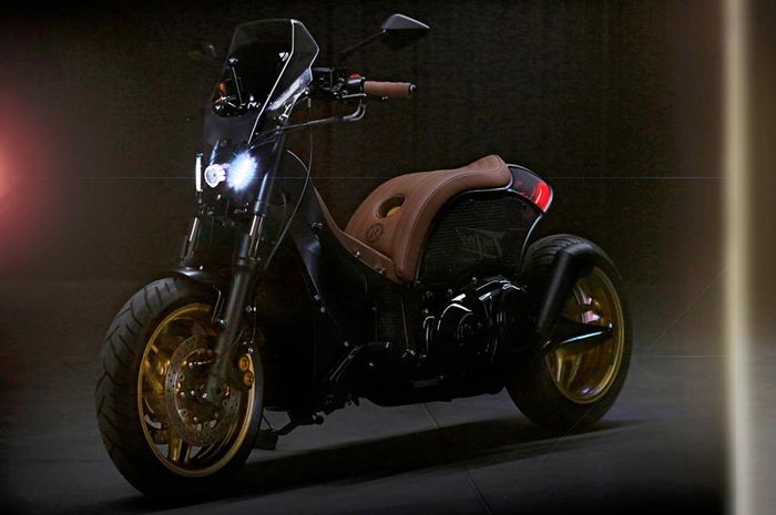 Konsep cafe racer modern dipilih untuk diaplikasikan ke sebuah motor matic berbodi gambot ini.